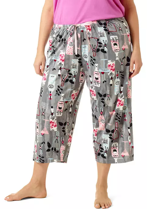 Sip your favorite wine in comfort in these bottle-printed Capri-length pajama pants from HUE®.