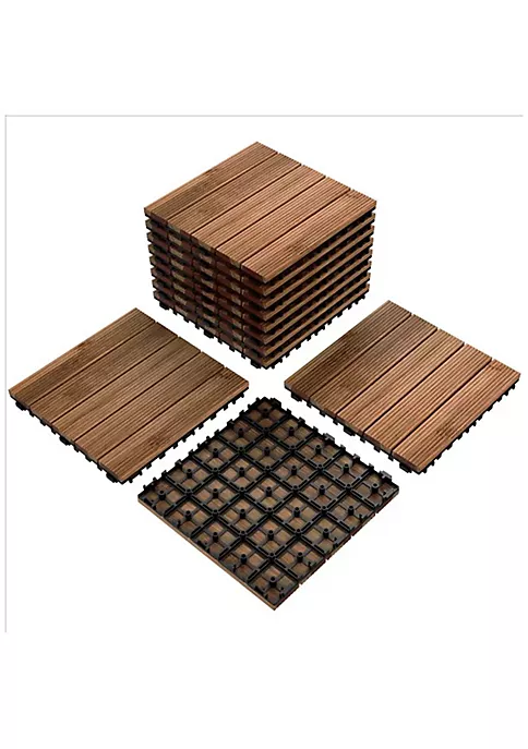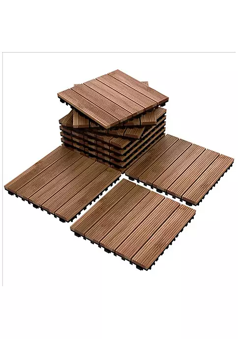 Selected material our interlocking wood tile is crafted out of natural solid fir wood. Treated with high-temperature drying process, these wood tiles do not easily mildew even in the high humidity condition. Safe to use, fully sanded tiles prevent any undesired injury caused by wood splinters. Grooves on each wood slat increase friction and decrease the accident rate of skidding when the tiles are wet. Also, the plastic backing rises up the wood and allows for adequate drainage and ventilation. Wide applicability these wood flooring tiles are great materials for house renovation and patio designs. You can place these tiles on any hard surface like cement, wood floor or on the carpet. Due to its good quality and durability, they can be applied to both indoors and outdoors, like the deck, poolside, balcony, gazebo, greenhouse, bathroom, etc. Easy to apply these wooden floor tiles have interlocking snaps on the back for easy and quick installation, no tools required. You just simple snap them together and place them wherever you want, or detach the tiles for cleaning and storing. The tiles can be cut if you need to fit it around a corner or a pole. Low maintenance required this high-quality wood flooring tiles are built to last for years without much care and maintenance. Sold in a pack of 11 tiles, one pack contains 11 tiles which can cover an area of about 11 square feet/1m².