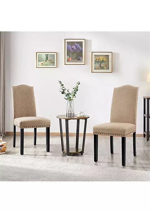 Topeakmart 2pcs Upholstered Fabric Dining Chair Kitchen Chair with Solid Wood Legs, Khaki: