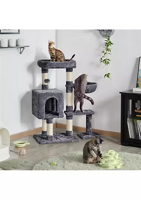 Topeakmart 38-in Cat Tree Condo Scratching Post Tower with Plush Perch and Basket, Dark Gray: