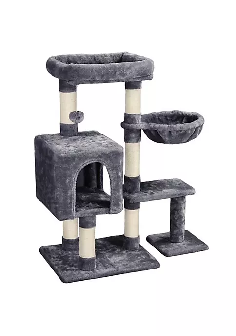 This multifunctional cat furniture could meet various needs of your loved cats, which includes lying around, scratching, stretching to playing or hiding with friends. Crafted of durable materials and built in a solid structure, this cat tree will be a reliable playground for long-term use. The whole stand is covered with soft and skin-friendly plush fabric, which brings ultimate comfort and keeps them warm all the time. With the compact size, modern design and neutral colors, this cat tower will be easily blended into different home decors and perfect for apartments and small spaces.