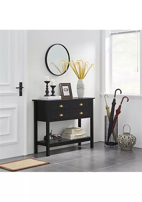 Topeakmart 4-Drawer Console Table Entryway Table with Open Shelf Pine Wood Legs, Black: