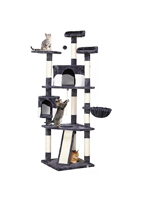 Topeakmart 79” Multilevel Cat Tree Condo with Basket & Scratching Posts & Ramp, Dark Gray & White: