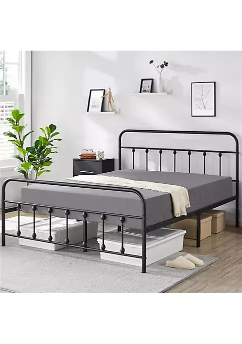 Topeakmart Classic Black Iron Queen Bed with 12.5″ Underbed Clearance: