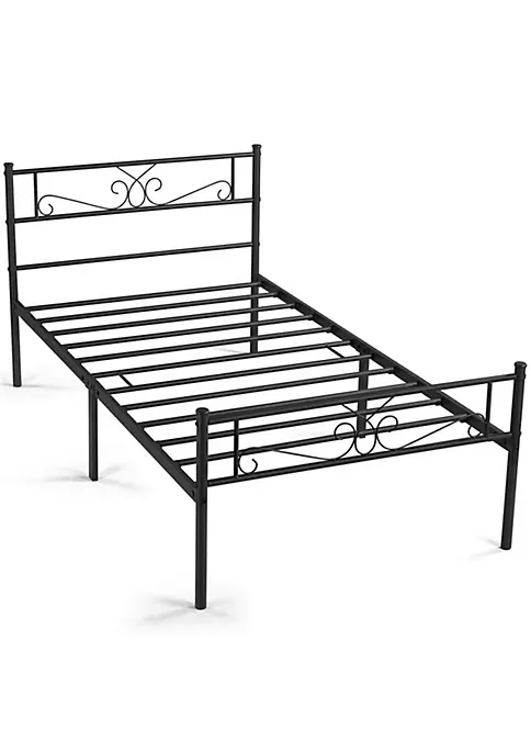 Topeakmart Black Metal Platform Twin Bed with Scroll Design Headboard and Footboard: