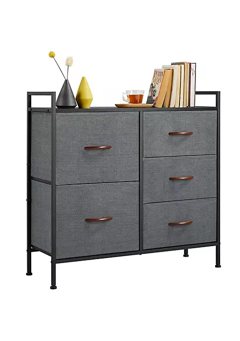 Topeakmart Fabric Storage Dresser with 5 Drawers, Metal Frame and Wooden Top for Closets, Bathrooms, Nurseries, Small Space Dark Gray: