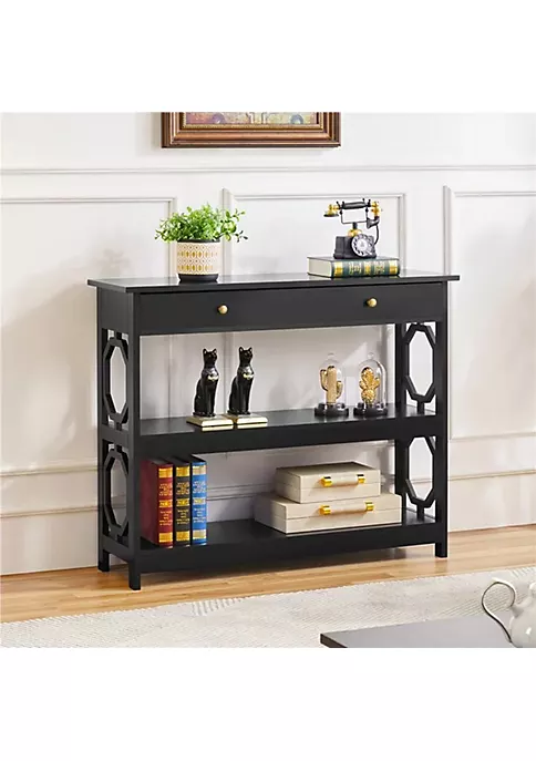 Topeakmart Drawer Console Table with Storage & Shelves, Black: