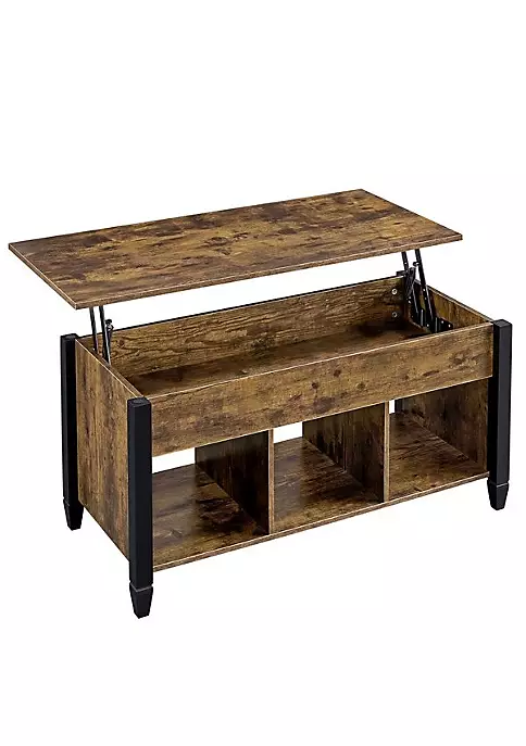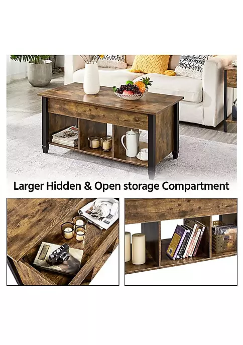 Topeakmart Wooden Lift Top Coffee Table Coffee Accent Table with Hidden Compartment for Living Room Reception Rustic Brown: