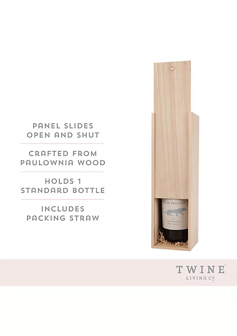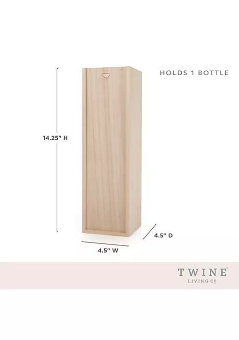 Tuck a bottle of wine away in a light, lithe wooden box to rest padded by packing straw until you’re ready to open it up. Easily wrapped or decorated, the plain shell works as a suitable gift box for a good wine or a means of storing your own bottle out of the way of dust and sunlight.