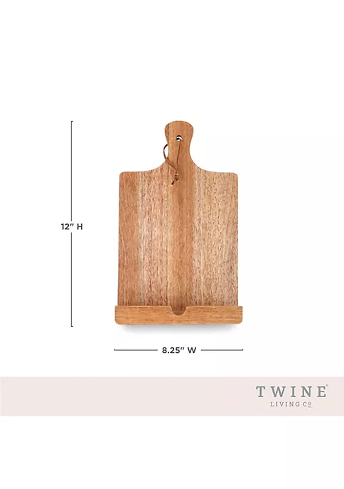 This smooth-sanded acacia wood cooking easel holds a tablet, smartphone, cookbook or recipe card so you can glance back at the ingredients and instructions as many times as you wish. With elegant rounded corners, a hinged brace at its back and a faux leather strap for hanging when not in use, you’ll never cover your phone or tablet in flour or sugar again!