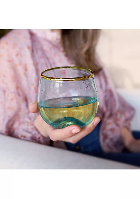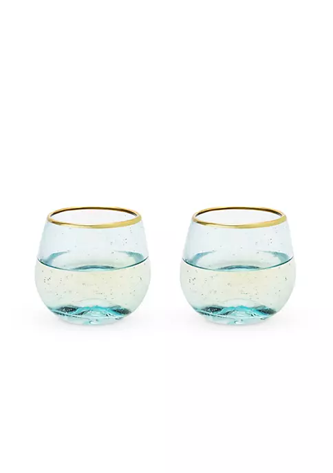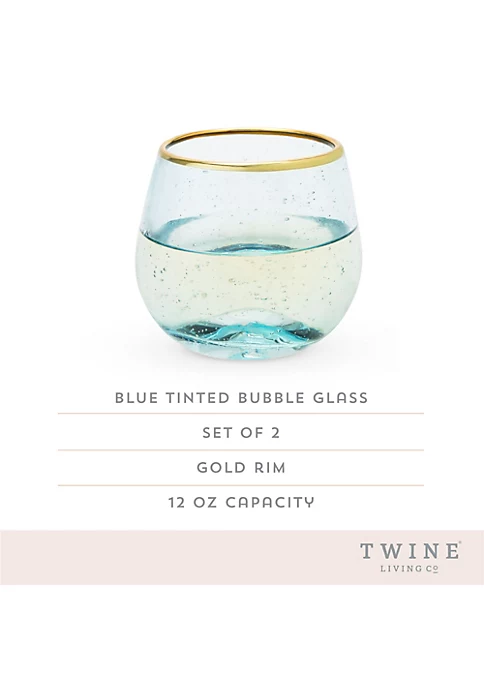 A series of delicate bubbles sit suspended in aqua-tinted glass while a laurel of gleaming gold plating adorns the rim, adding a vestige of intrigue to an already stunning set of glassware. Designed to contain 12 ounces comfortably, each tumbler is impeccably suited to accommodate any of your favorite mixed beverages.Set of 2Holds 12 ounces eachBubbled glass detailElectroplated gold rimMakes a great giftTwine crafts glassware and home goods with an emphasis on classic style, natural materials, and a nostalgic sense of quality. From elegant glassware to charming bar tools, Twine ties everything together.
