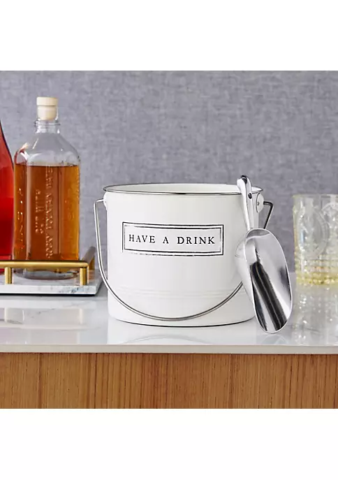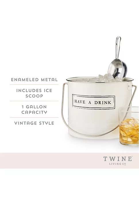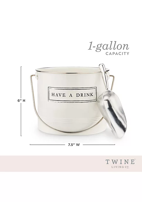 Don’t mind if I do. This enamel bucket with ice scoop invites guests to kick back and relax, helping you create a welcoming entertaining experience. A perfect match for modern farmhouse style, this ice bucket set is at home in any cozy kitchen or backyard cocktail party. With a handle for easy transporting, your guests will be taken care of wherever the fun takes you.White enamel metal bucketBlack “Have A Drink” letteringIncludes ice scoop1-gallon capacityTwine brings rustic farmhouse style to your entertaining for warm, elegant, old-fashioned hospitality at every event. Transport yourself to a vineyard getaway with Twine’s country home goods and essentials.