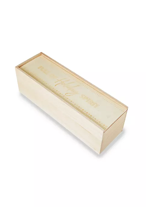 Tuck a bottle of wine away in a light, lithe wooden box to rest padded by packing straw until you’re ready to open it up. Etched holiday patterns and the words Full of Holiday Spirit give this wine box festive flair and hint at its spirited contents! This is the perfect holiday gift box for a good wine. Accommodates 1 standard wine bottle. Paulownia wood construction with sliding lid and packing straw.