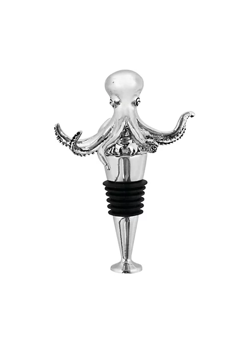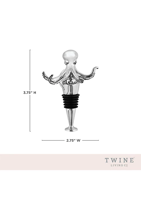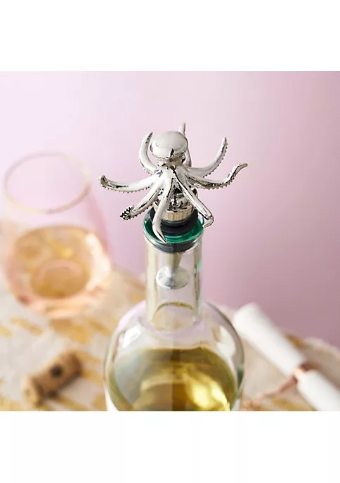 Bring the ocean home with our beautiful octopus bottle stopper. This dramatically detailed octopus sits on top of your wine bottle, helping keep your wine fresh and looking stylish doing it. Made from metal with a rubber seal. Fits standard wine bottles. Hand wash.