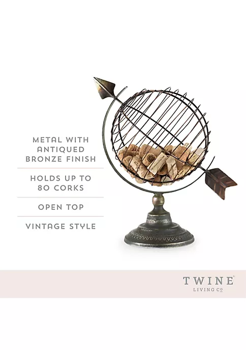 Never lose a cork again! Preserve and display your favorite corks in this elegant Old World Globe Cork Holder. With an opening at the top, you’ll be able to access your cork collection with ease. Holds roughly 80 corks, measures 14.5″ tall, crafted from painted metal, open top.