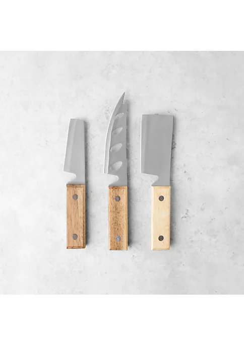 With rough hewn acacia wood handles and stainless steel blades, our Country Home Cheese Set is perfect for serving an assortment of cheeses.