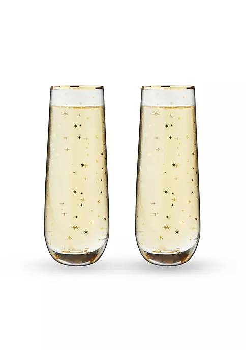 Reach for the sky with this set of star-patterned champagne glasses. Adorned with a celestial pattern, these flutes are sure to bring festive flair to your holiday season and make a statement year round. -Set of 2 stemless wine flutes -Gold star pattern -18 oz capacity -Gold electroplated rim Bring cheery farmhouse style to your entertaining for warm, elegant, old-fashioned hospitality at every event. Twine’s collections emphasize rustic elegance, natural materials, and a nostalgic sense of quality. From elegant barware to quaint cheeseware, Twine ties everything together.