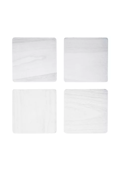 This set of four coasters features a subtle yet striking whitewash pattern. The resulting aesthetic is a wood grain that is also reminiscent of white marble, ensuring that these coasters fit in with a range of household decor styles. Evoke white picket fences and barnyard bliss while protecting furniture from drink condensation with these whitewashed coasters.