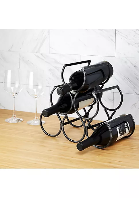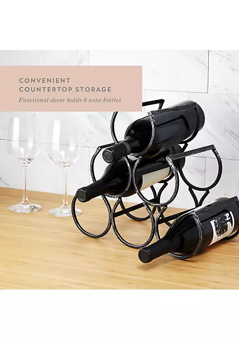This sturdy cast iron wine rack will bring some country farmhouse style to your home bar or kitchen. Display and store your wine in this classic, elegant wine holder.Black cast iron with antiqued finishHolds 6 standard wine bottles11.25″ x 13″ x 6.5″Classic vintage style This wine rack will transport you to a beautiful vineyard getaway in your own home. Twine’s collections emphasize rustic elegance, natural materials, and a nostalgic sense of quality. From elegant barware to quaint cheeseware, Twine ties everything together.