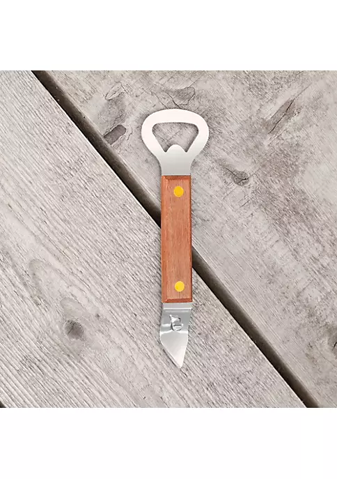 We’ve added class to a classic with our wood-handled bottle opener. Gorgeous, finely grained wood transforms an old-fashioned church key into an elegant kitchen tool and turns a simple job into a simple pleasure. Metal & wood. Opens bottles & cans.