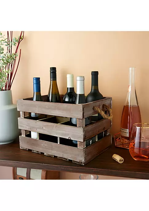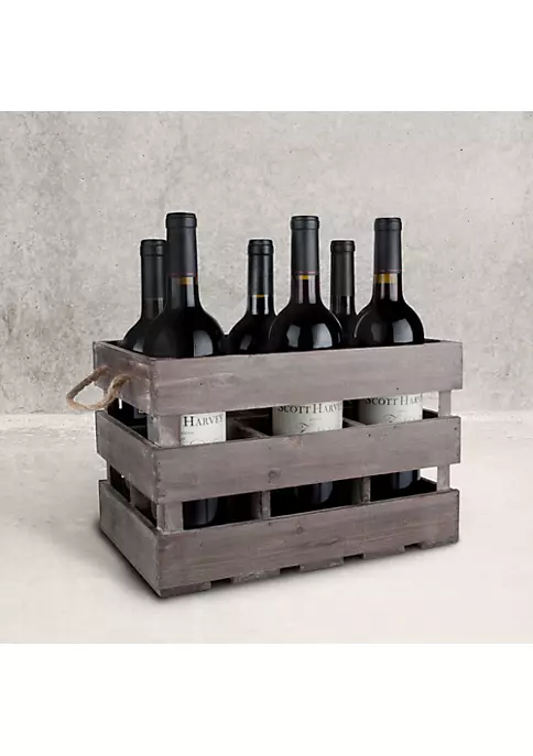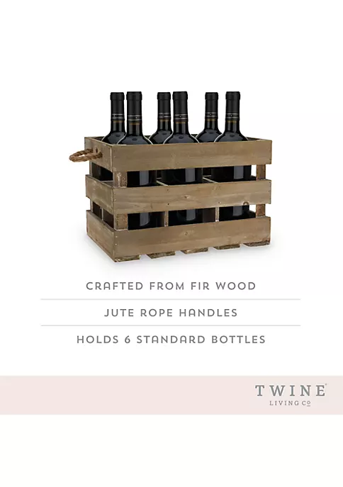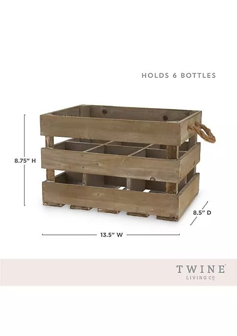 Carefully constructed from fir wood with rope handles for easy, comfortable conveyance, our lovely wooden crate is inspired by simple farmstead craftsmanship. Accommodating six of most any variety of bottle, here is a beautiful way to keep your drinks in order.